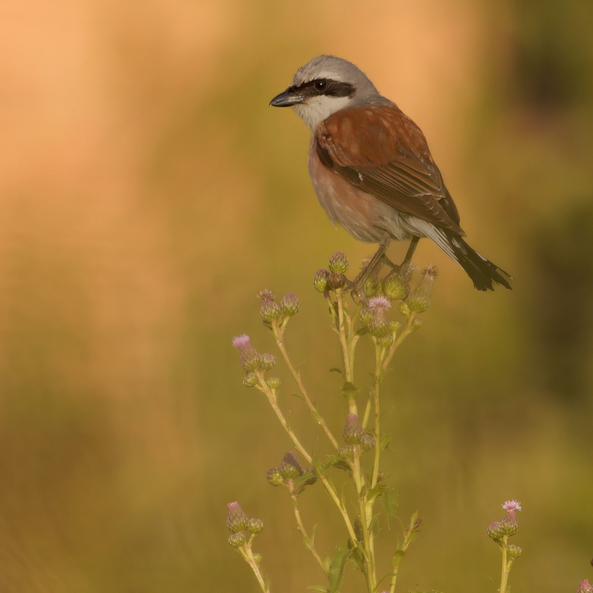 Red-backed Shrikes are remarkable birds. One of 34 species in the family Laniidae, the shrikes could be described as ‘Mini-raptors’ and are colloquially known as butcher birds because of their bizarre and slightly gruesome feeding habits. Shrikes are carnivorous birds and having captured their prey, they impale the unfortunate individual (usually a small rodent or large insect) on a thorn bush or barbed wire fence known as a larder. This trait is shared by many shrike species globally and although it is unpleasant it is certainly effective and ensures a constant food supply. Red-backed shrikes are a charismatic bird which have been admired by generations of bird watchers and aside from their brutal larders, the ‘Shrike’ part of their name is thought to be derived from the old English term ‘Schive’ meaning ‘shriek’ referring to the bird’s shrill call.