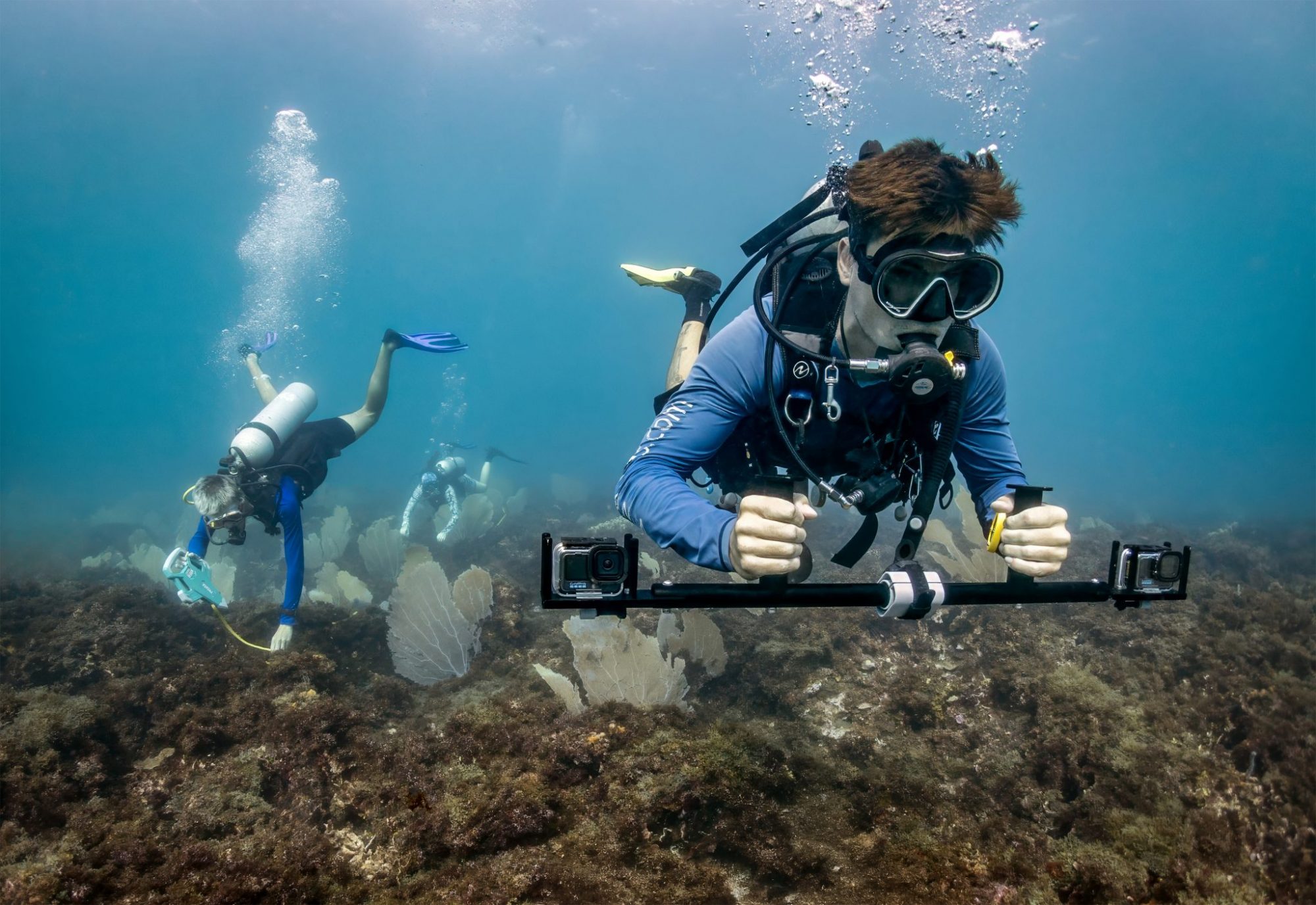 This was taken in Tela Bay, Honduras in 2025. It shows one of the project leads (Ross) using the stereo video capture rig that was used for marine surveys and in the background, his two research assistants carefully practicing “”laying and tucking”” a transect tape. I like this shot because it tells a story, it’s genuinely interesting and makes the viewer spend a moment investigating what’s going on in the photo. It shows Opwall’s activities, the environment in which we worked, demonstrates collaboration and teamwork and shows good diving skills. I’m also very proud, as I was the dive instructor and the two RA’s were my students!