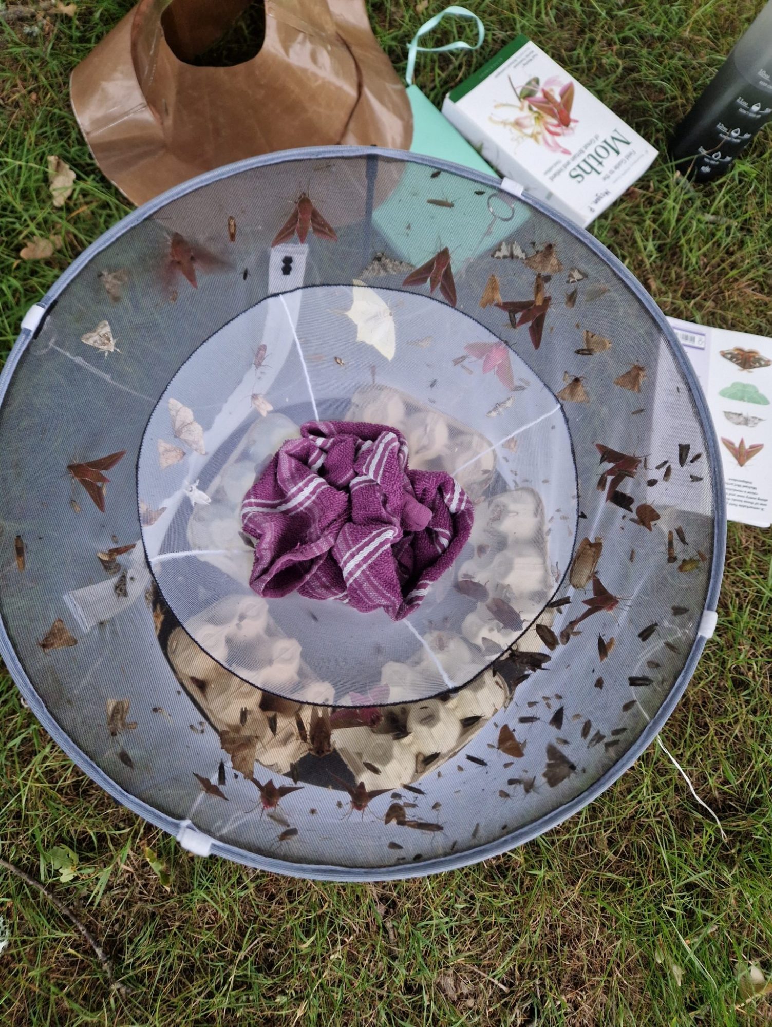 This photo was taken the morning after setting up a moth trap, we caught an amazing variety including Elephant Hawk moth, Poplar Hawk moth, Buff-tip, Scalloped Oak, Drinker and many more! We quickly identified as many as we could and then let them all go free.