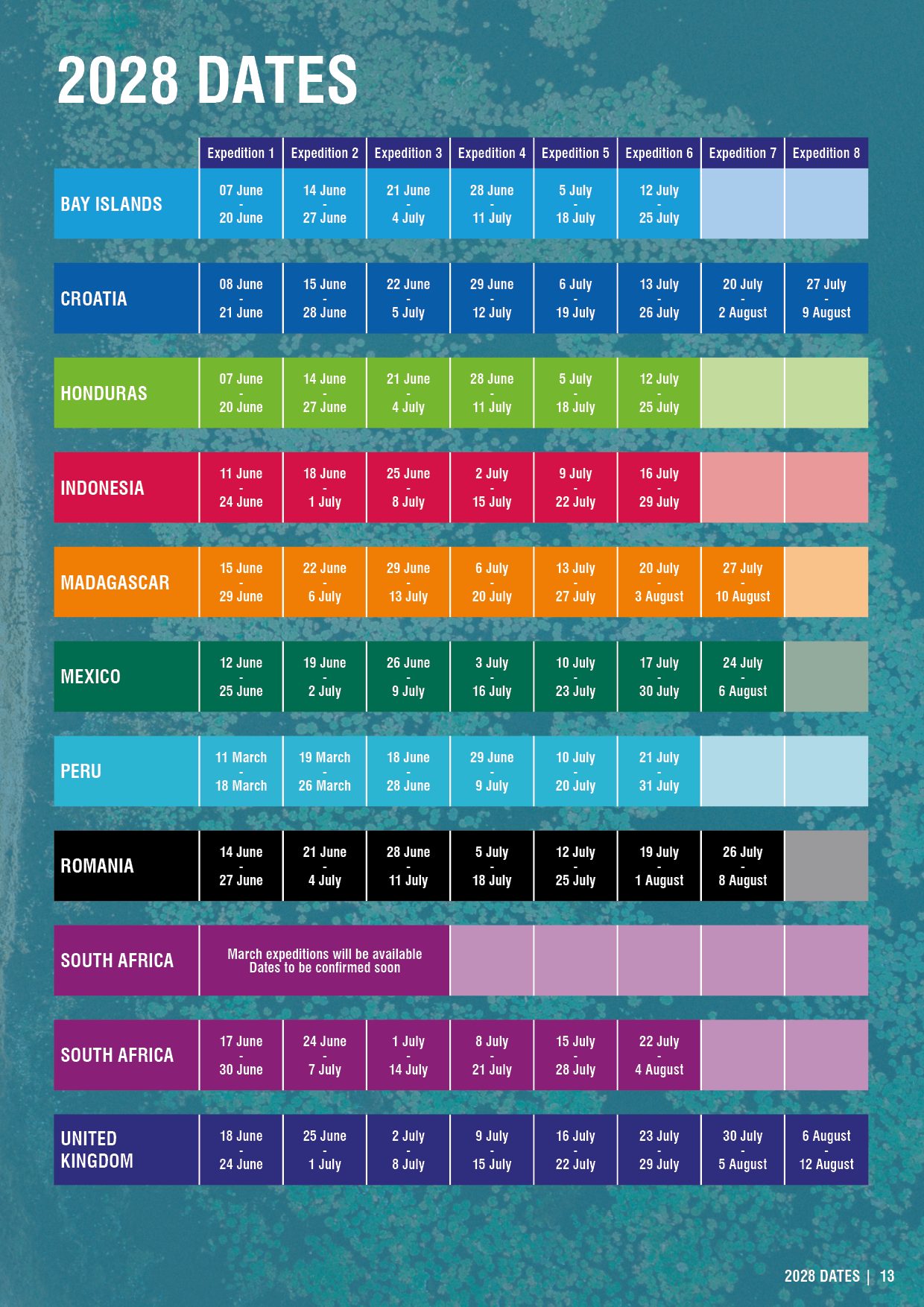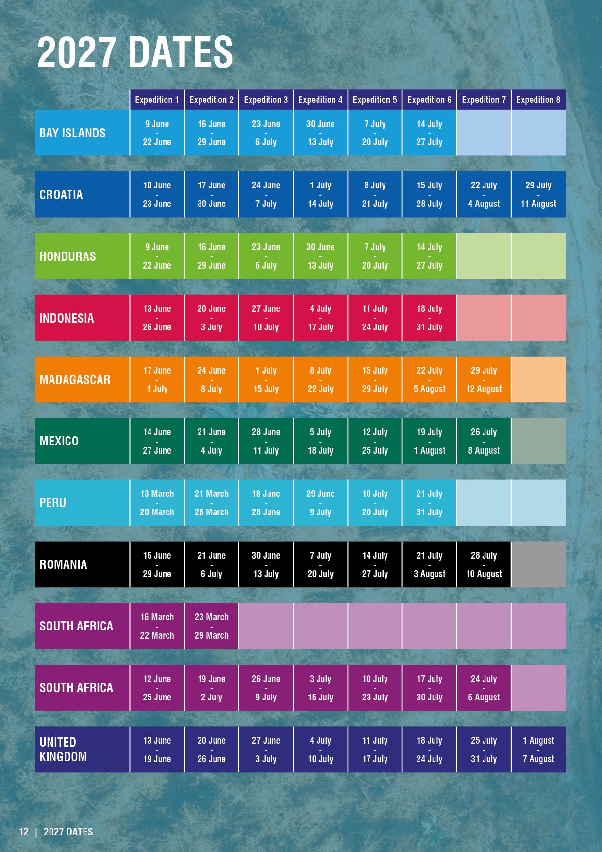 Below you will find the tables of our 2026, 2027 & 2028 dates available for school groups. Please contact your nearest Operation Wallacea office for a detailed quote for any of the expeditions of interest to you.